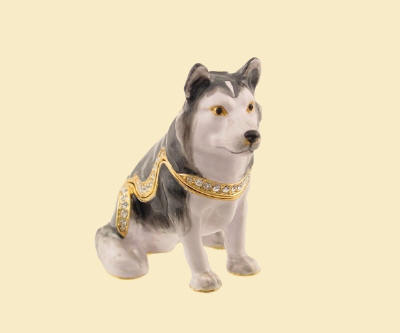 Huskies Jeweled Box Enameled pewter box bejeweled with Austrian crystals