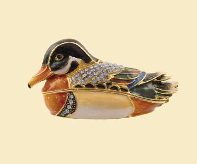 Duck Jeweled Box Enameled pewter box bejeweled with Austrian crystals