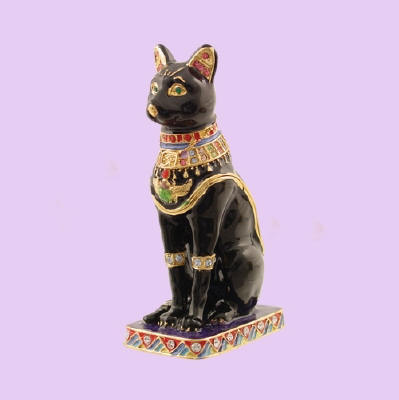 Bastet Jeweled Box Enameled pewter box bejeweled with Austrian crystals