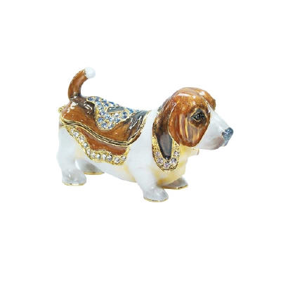 Bassett Hound Jeweled Box Enameled pewter bejeweled w/ Austrian crystals