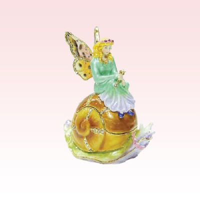 Fairy On Snail Jeweled Box Enameled Pewter Box Bejeweled w/ Austrian Crystals
