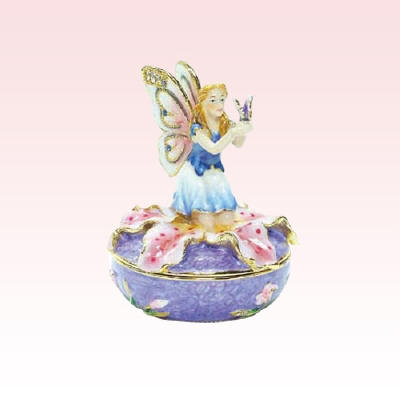 Fairy on Lilly Jeweled Box Enameled Pewter Box Bejeweled w/ Austrian Crystals