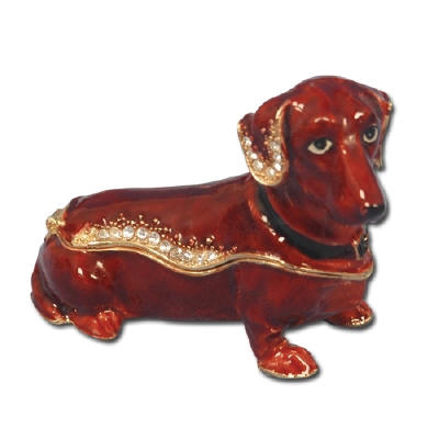 Dachshund Jewelry Box Enameled pewter box bejeweled with Austrian crystals