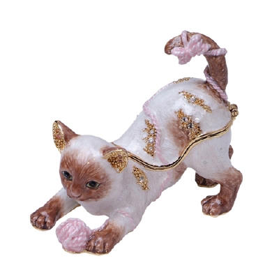 Cat Jewelry Box Enameled pewter box bejeweled with Austrian crystals
