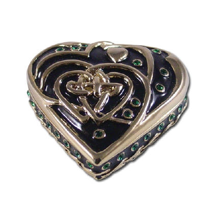 Heart Celtic Jewelry Box Enameled pewter box bejeweled with Austrian crystals