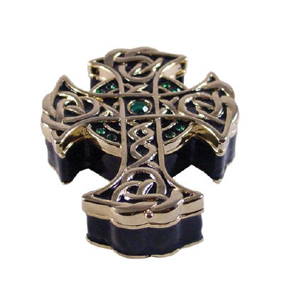 Cross Celtic Jewelry Box Enameled pewter box bejeweled with Austrian crystals