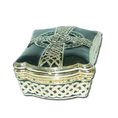 Quadrate Celtic Jewelry Box Enameled pewter box bejeweled with Austrian crystals