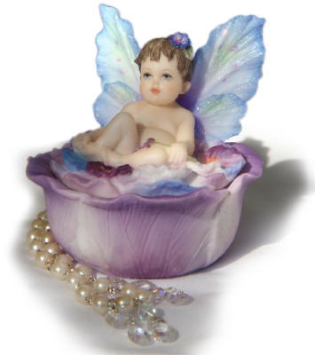 Figurine Blue Pretty Pansy Trinket Box Hand Painted Resin Designed by Kathleen Francour