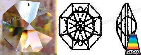 Swarovski Strass Crystal Octagon Lily With Lazer Logo Etched 60mm 2 hole # 8116-60 Set of 10pc Quality Product Made In Austria Genuine Authentic Austrian Swarovski Crystals with lazer logo etched Dimensions: 60 mm Usage: Chandelier crystal part, suncatchers, feng shui, jewerly beads, pendant