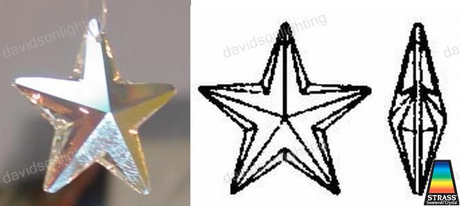 Swarovski Strass Aurora Star With Lazer Logo Etched 40mm # 8815-40 Set of 10pc Quality Product Made In Austria Genuine Authentic Austrian Swarovski Crystals with lazer logo etched Dimensions: 40 mm Usage: Chandelier crystal part, suncatchers, feng shui, jewerly beads, pendant