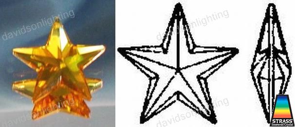 Swarovski Strass Topaz Star With Lazer Logo Etched 40mm # 8815-40 Set of 10pc Quality Product Made In Austria Genuine Authentic Austrian Swarovski Crystals with lazer logo etched Dimensions: 40 mm Usage: Chandelier crystal part, suncatchers, feng shui, jewerly beads, pendant