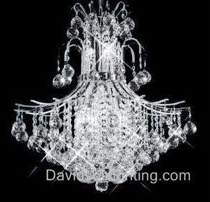 Chandelier 30% lead Crystal Cantolo Collection# A1001L24a / Dimentions: w24" x h28" / Frame color: polished chrome, also available in 24k gold frame / Contains 11x60w candeliabra bulbs - included / Availability: in stock 2-3 days
