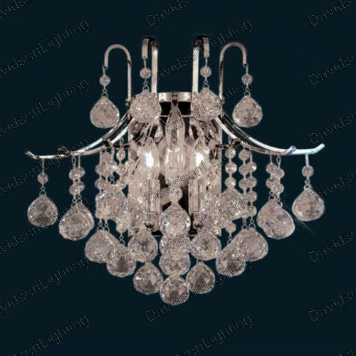 Wall Sconces 30% lead Crystal Cantolo Collection# A1001L3a / Dimentions: w14" x h15" / Frame color: polished chrome, also available in 24k gold frame / Contains 3x60w candeliabra bulbs - included / Availability: in stock 2-3 days