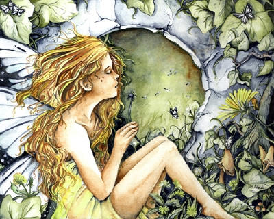 Ceramic Art Tile > Dandelion Wishes by Abranda Icle Sisson Dandelion Wishes by Abranda Icle Sisson 8"x10" Ceramic Art Tile with recessed hangers for tabletop or wall hanging purposes