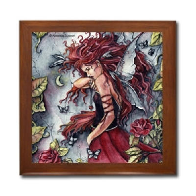 My Hearts Choice Ceramic Tile Box by Artist Abranda Scisson Dark wood jewely box measures 5 1/8" x 5 1/8" x 2 3/4" and is fully lined on the inside