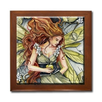 Ceramic Tile Box > Golden Apple Ceramic Tile Box by Artist Abranda Scisson Dark wood jewely box measures 5 1/8" x 5 1/8" x 2 3/4" and is fully lined on the inside