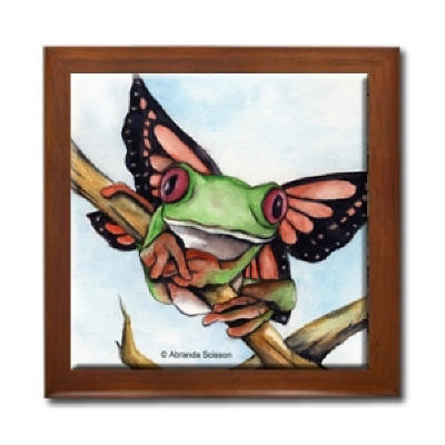 Ceramic Tile Box > Fairy Frog Ceramic Tile Box by Artist Abranda Scisson Dark wood jewely box measures 5 1/8" x 5 1/8" x 2 3/4" and is fully lined on the inside