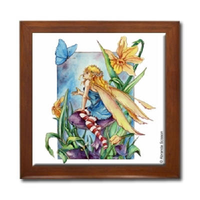 Ceramic Tile Box > Conversation Ceramic Tile Box by Artist Abranda Scisson Dark wood jewely box measures 5 1/8" x 5 1/8" x 2 3/4" and is fully lined on the inside