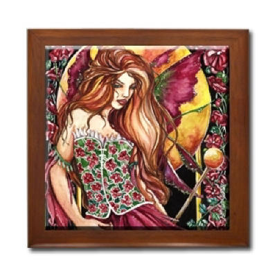 Ceramic Tile Box > Moon Mystic Ceramic Tile Box by Artist Abranda Scisson Dark wood jewely box measures 5 1/8" x 5 1/8" x 2 3/4" and is fully lined on the inside