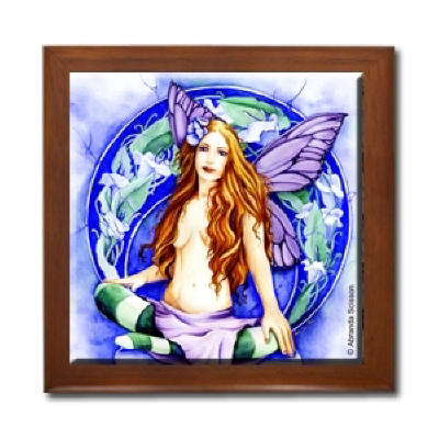 Ceramic Tile Box > Vanilla Lily Ceramic Tile Box by Artist Abranda Scisson Dark wood jewely box measures 5 1/8" x 5 1/8" x 2 3/4" and is fully lined on the inside