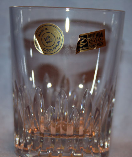 Factory closeout , Set of 6 glasses , Dishwasher-safe for easy cleaning; made in Czech Republic, Handcut mouth-blown glasses are 24% lead crystal , Each glass is awesome as the piece of artwork