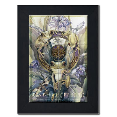 Ceramic Art Tile Mural > Don't Worry By Happy by Artist Jody Bergsma Don't Worry By Happy by Artist Jody Bergsma Tile mural of Six (6"x6" tiles) framed in a black wood frame Dimensions (LxWxH): 22.00 x 26.00 x 1.00 in.