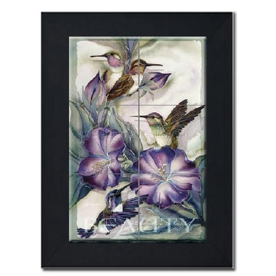 Ceramic Art Tile Mural > Beauty by Artist Jody Bergsma Beauty by Artist Jody Bergsma Tile mural of Six (6"x6" tiles) framed in a black wood frame Dimensions (LxWxH): 22.00 x 26.00 x 1.00 in.