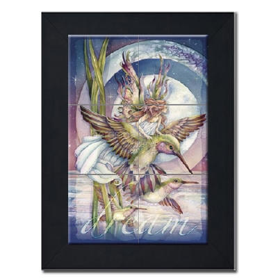 Dream by Artist Jody Bergsma Dream by Artist Jody Bergsma Tile mural of Six (6"x6" tiles) framed in a black wood frame Dimensions (LxWxH): 22.00 x 26.00 x 1.00 in.