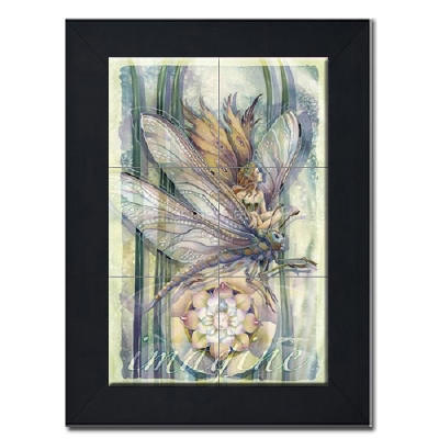 Ceramic Art Tile Mural > Imagine by Artist Jody Bergsma Imagine by Artist Jody Bergsma Tile mural of Six (6"x6" tiles) framed in a black wood frame Dimensions (LxWxH): 22.00 x 26.00 x 1.00 in.
