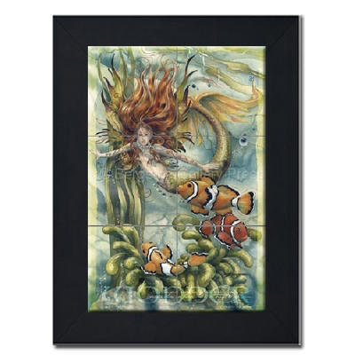 Ceramic Art Tile Mural > Wonder by Artist Jody Bergsma Wonder by Artist Jody Bergsma Tile mural of Six (6"x6" tiles) framed in a black wood frame Dimensions (LxWxH): 22.00 x 26.00 x 1.00 in.