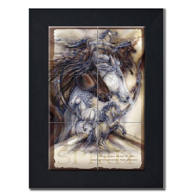 Spirit by Artist Jody Bergsma Spirit by Artist Jody Bergsma Tile mural of Six (6"x6" tiles) framed in a black wood frame "May your heart be free and your dreams live forever" Dimensions (LxWxH): 22.00 x 26.00 x 1.00 in.