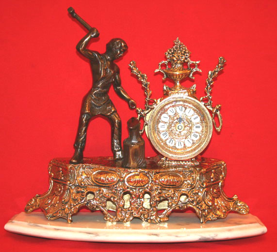 Hand Made Bronze Portugal Old Fashion Shelf Clock with Marble Base