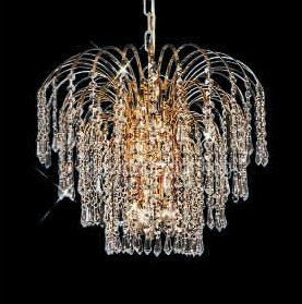 Chandelier 30% Lead Crystal Falls Collection # DVR68011412 W14" x H12" Frame color: 24k Gold Frame or Polished Crome / Contains 4 candeliabra bulbs - included / Availability: in stock 2-3 days