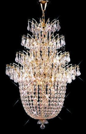 Chandelier 30% Lead Crystal Flora Collection # DVR58003150 W31" x H50" Frame color: 24k Gold Frame or Polished Crome Contains 25 candeliabra bulbs - included / Availability: in stock 2-3 days