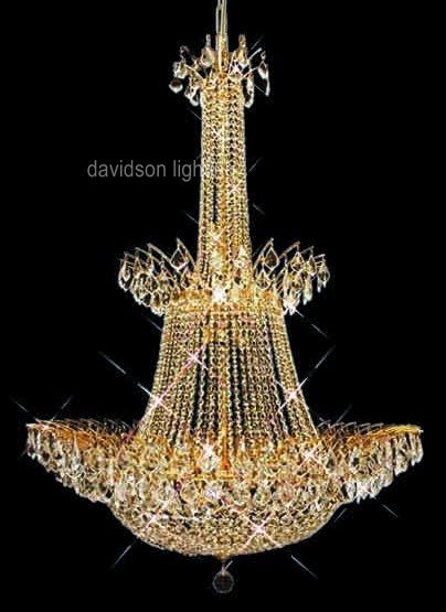 Chandelier 30% Lead Crystal Flora Collection # DVR58013652G W36" x H52" Frame color: 24k Gold Frame or Polished Crome Contains 21 candeliabra bulbs - included / Availability: in stock 2-3 days