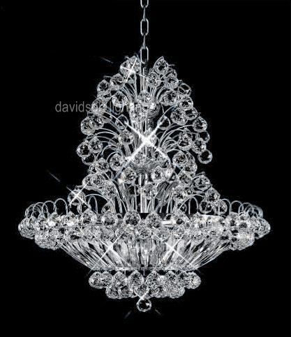 Chandelier 30% Lead Crystal Sirius Collection # DVR29082428 W24" x H28" Frame color: Polished Chrome or 24K Gold Plated. Contains 14 candeliabra bulbs - included / Availability: in stock 2-3 days
