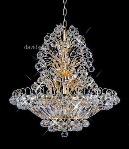 Chandelier 30% Lead Crystal Sirius Collection # DVR29082836 W28" x H36" Frame color: 24K Gold Plated or Polished Chrome Contains 14 candeliabra bulbs - included / Availability: in stock 2-3 days