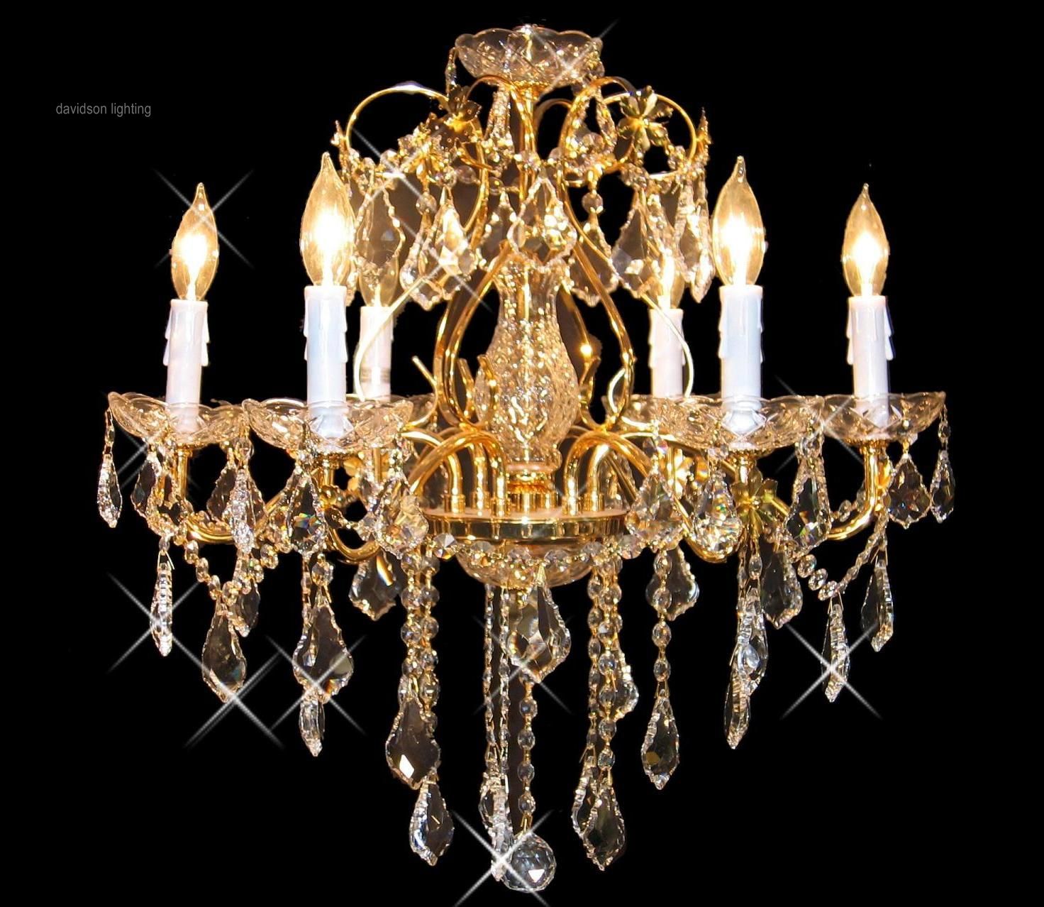 Chandelier 30% Lead Crystal St.Francis Collection # DVR20152421 W24" x H21" Frame color: Polished Chrome or 24K Gold Plated. Contains 6 candeliabra bulbs - included / Availability: in stock 2-3 days