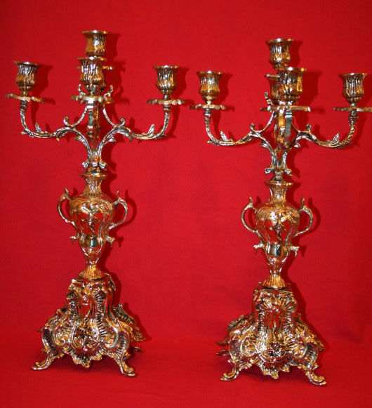 Set of 2 Beautiful Hand Made Bronze Portugal Old Fashion Candleholders Size 20 in Bronze Candleholder