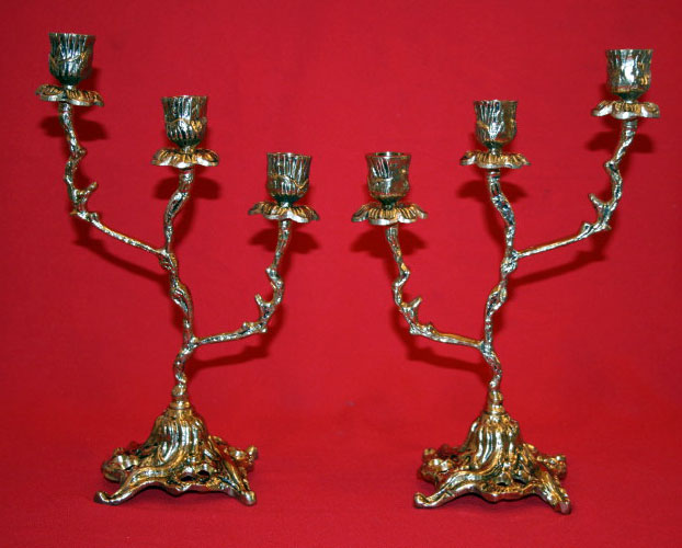 Set of 2 Beautiful Hand Made Bronze Portugal Old Fashion Candleholders