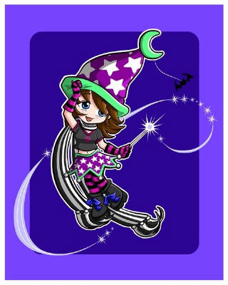 Punky Little Witch by Chrissy Clark 8"x10" Ceramic Art Tile with recessed hangers for tabletop or wall hanging purposes