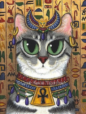 Ceramic Art Tile > Bast Goddess by Carrie Hawks 8"x10" Ceramic Art Tile with recessed hangers for tabletop or wall hanging purposes