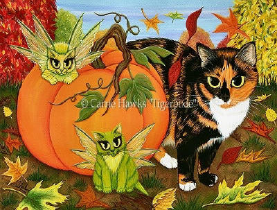 Calico's Mystical Pumpkin by Carrie Hawks 8"x10" Ceramic Art Tile with recessed hangers for tabletop or wall hanging purposes