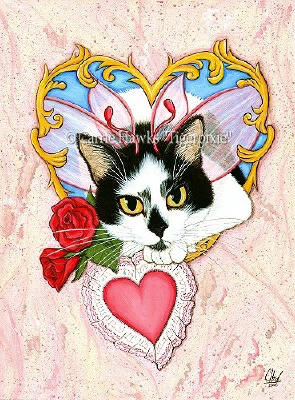 My Feline Valentine by Carrie Hawks 8"x10" Ceramic Art Tile with recessed hangers for tabletop or wall hanging purposes