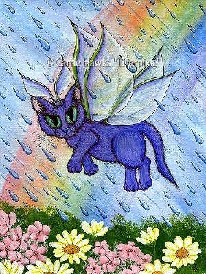 Ceramic Art Tile > Spring Showers Fairy Cat by Carrie Hawks 8"x10" Ceramic Art Tile with recessed hangers for tabletop or wall hanging purposes