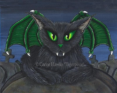 Ceramic Art Tile > Vampire Cat Bela by Carrie Hawks 8"x10" Ceramic Art Tile with recessed hangers for tabletop or wall hanging purposes