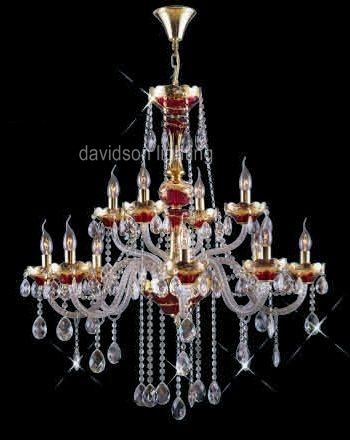 Chandelier 30% Lead Crystal Alexandria Collection # DVR78103537 Size W35" x H37" Frame color: 24k gold frame with Red finish. Contains 5+10 candeliabra bulbs - included / Availability: in stock 2-3 days