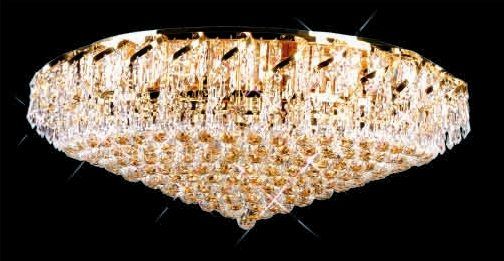 Chandelier 30% Lead Crystal Belenus Collection # DVR001F3618 Size W36" x H18" Frame color: 24K Gold Plated OR Polished Crome. Contains 28 candeliabra bulbs - included / Availability: in stock 2-3 days