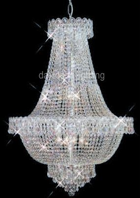 Chandelier 30% Lead Crystal Century Collection # DVR19002026 W20" x H26" / Frame color: Polished Chrome, also available in 24k Gold Frame / Contains 12 candeliabra bulbs - included / Availability: in stock 2-3 days