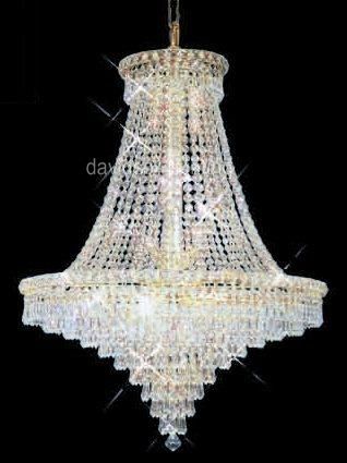 Chandelier 30% Lead Crystal Cinderella Collection # DVR20022430 W24" x H30". Frame color: 24K Gold Frame or Polished Crome / Contains 12 candeliabra bulbs - included / Availability: in stock 2-3 days